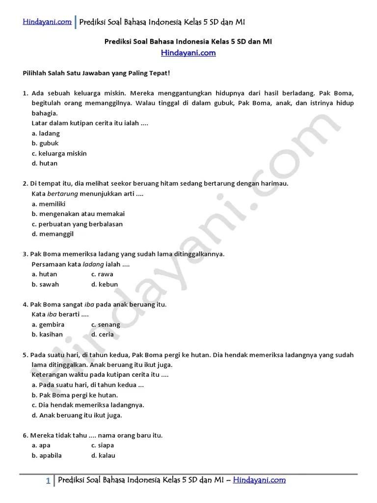Soal uas bahasa indonesia kelas 4 (empat) sd semester 1 (ganjil) dan kunci jawaban · 1.
